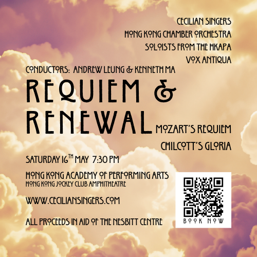 You are cordially invited to The Cecilian Singers and The Hong Kong Chamber Orchestra’s performance ‘Requiem & Renewal’, conducted by Andrew Leung and Kenneth Ma.