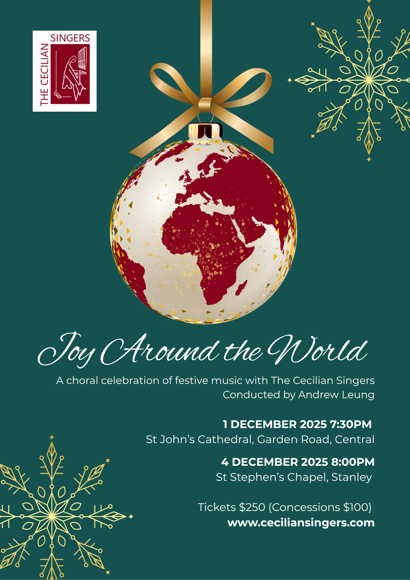 Started in 1962, the Cecilian Singers is a mixed choir in Hong Kong that sings a myriad repertoire from madrigals, world music to Mozart in the style of a cappella harmonies or pieces with accompaniment.